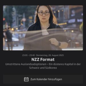 Am 28. August 2025, um 23:05 Uhr, zeigt SRF das NZZ Format “Umstrittene Auslandsadoptionen”.