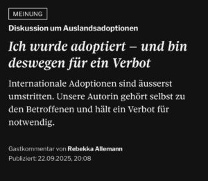 Der Dok “Umstrittene Auslandsadoptionen” von NZZ ist auf YouTube.